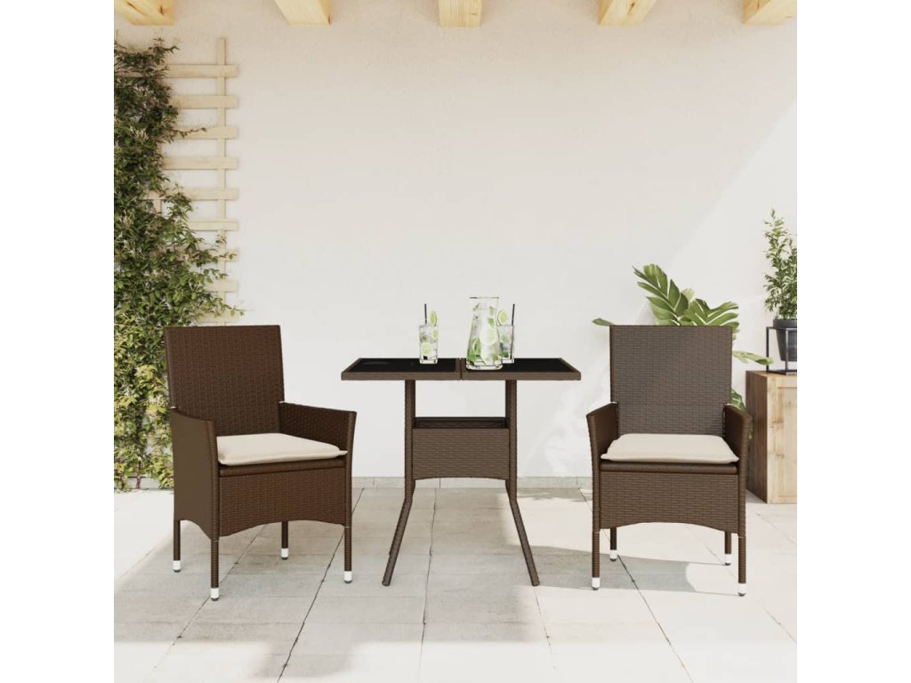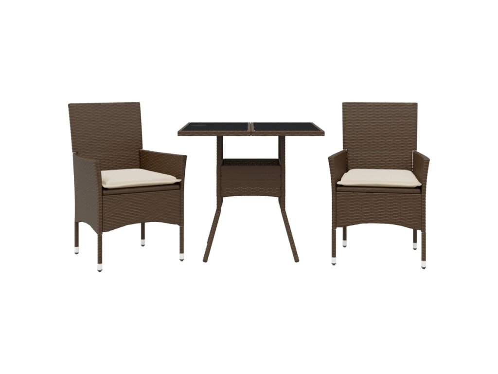vidaXL 3-dielna záhradná jedálenská súprava+podložky, hnedá, polyratan