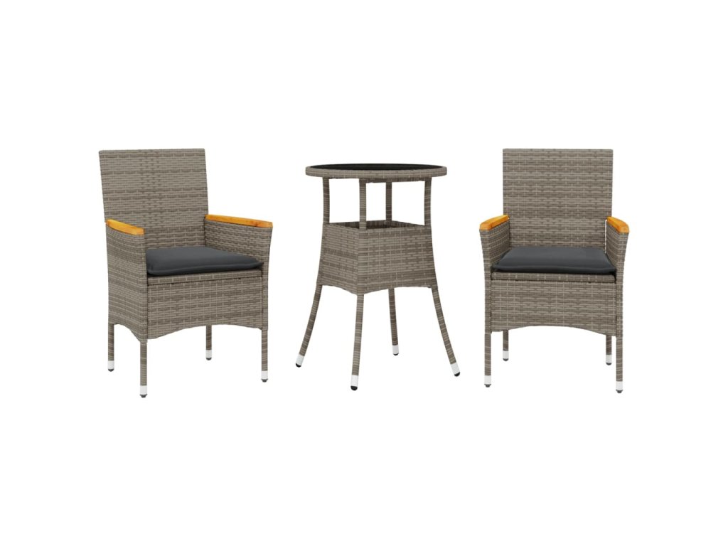 vidaXL 3-dielna záhradná jedálenská súprava+podložky, polyratan+sklo