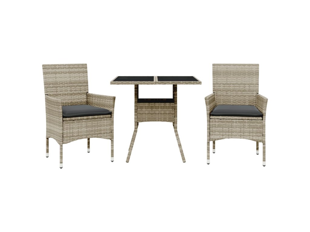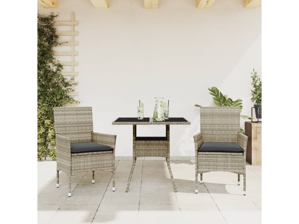 vidaXL 3-dielna záhradná jedálenská súprava+podložky, sivá, polyratan