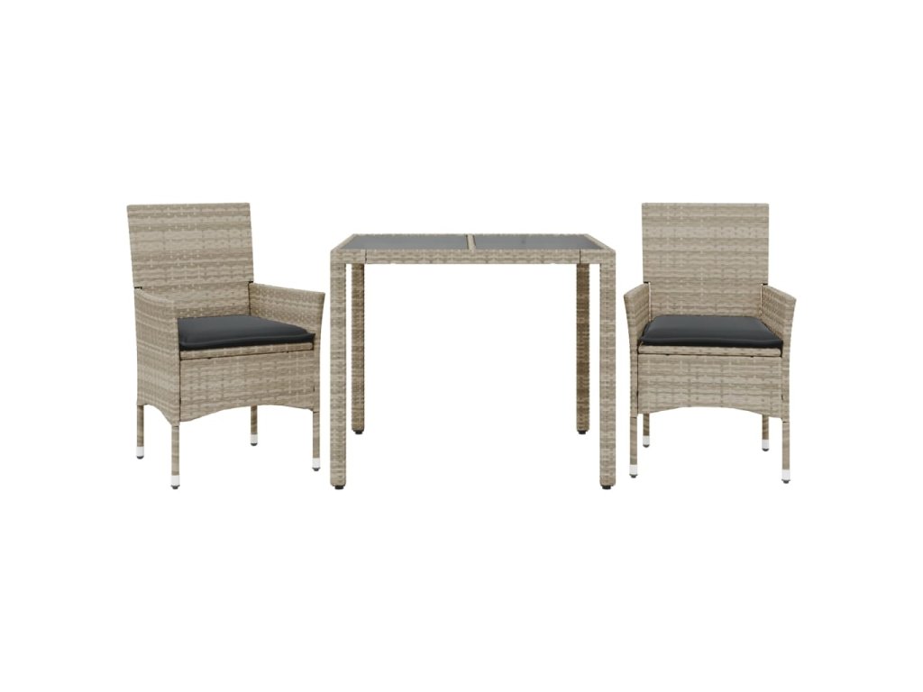 vidaXL 3-dielna záhradná jedálenská súprava+podložky, sivá, polyratan