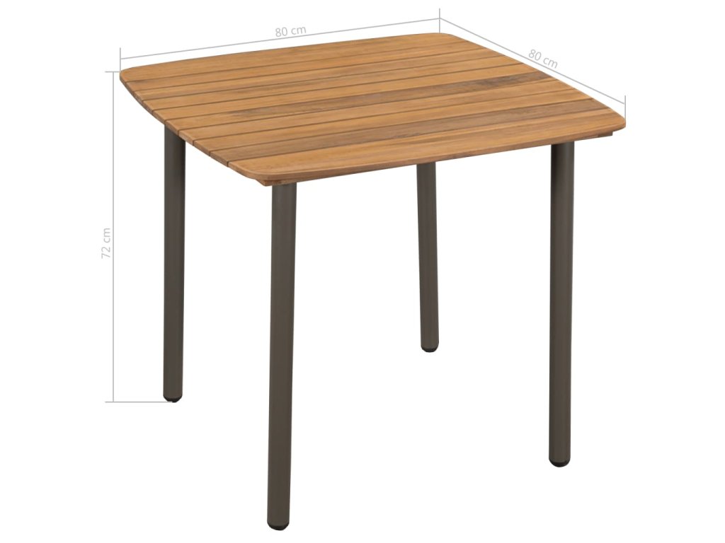 Jedálenský stôl je vyrobený z masívneho akáciového dreva a odolnej ocele, takže je pevný a stabilný. Vďaka povrchu s olejovým náterom je vhodný aj na vonkajšie použitie. Jedálenské stoličky s oceľovým rámom potiahnutým PE ratanom, ktorý je odolný voči poveternostným vplyvom, sú pevné a ľahko sa čistia. Tieto záhradné stoličky je možné stohovať, aby sa ušetrilo miesto, keď sa práve nepoužívajú.