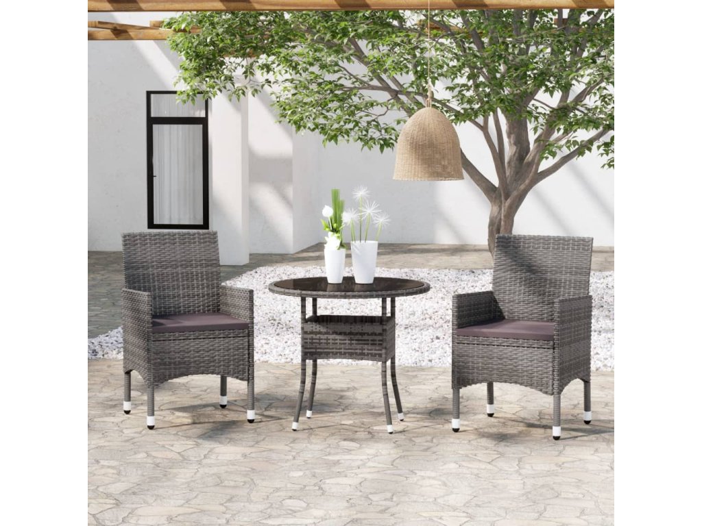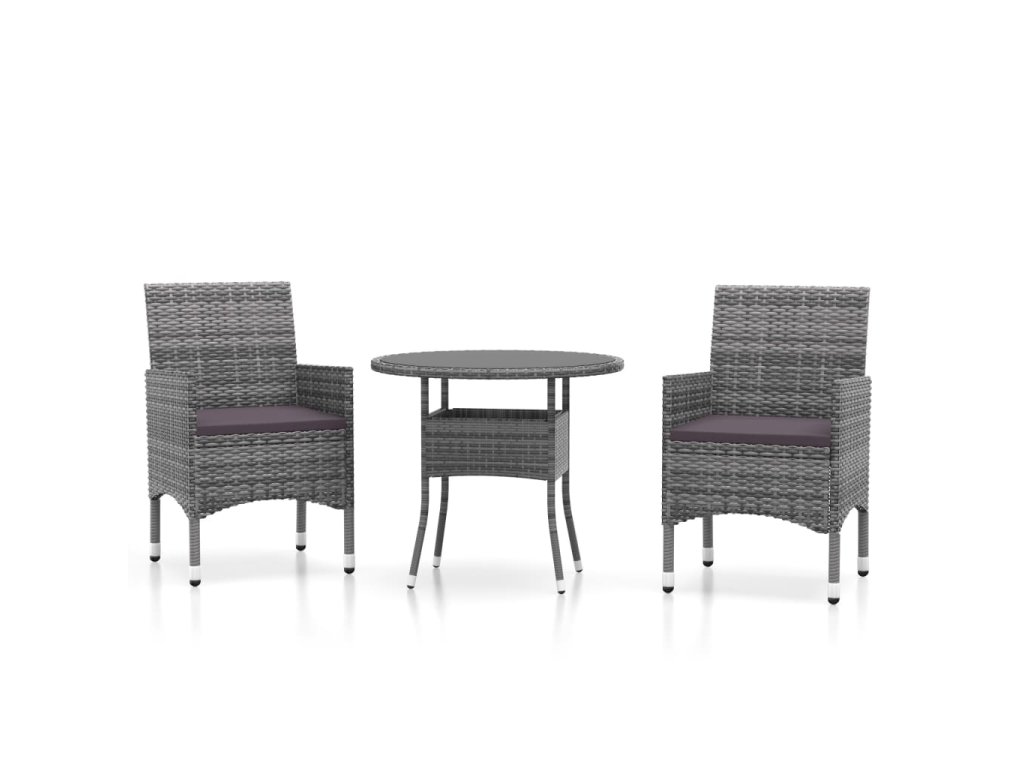 vidaXL 3-dielna záhradná jedálenská súprava polyratan sivá