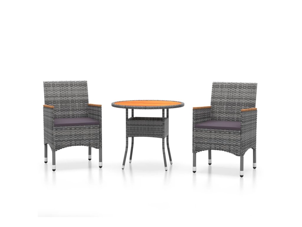 vidaXL 3-dielna záhradná jedálenská súprava polyratan sivá