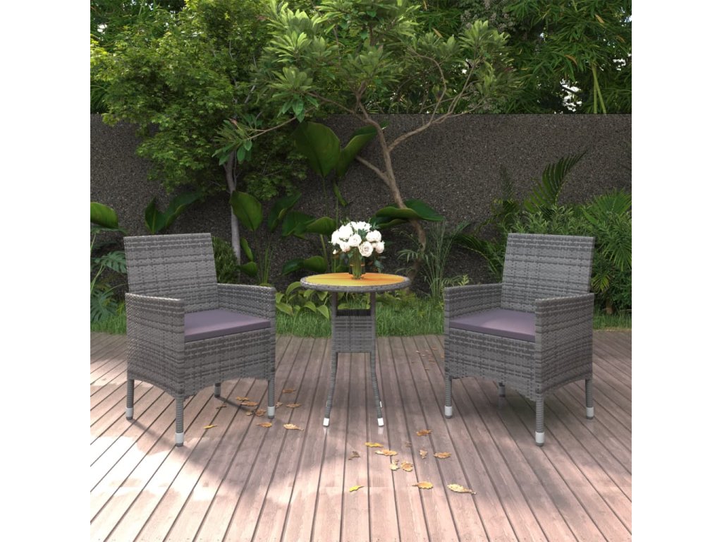 vidaXL 3-dielna záhradná jedálenská súprava polyratan sivá