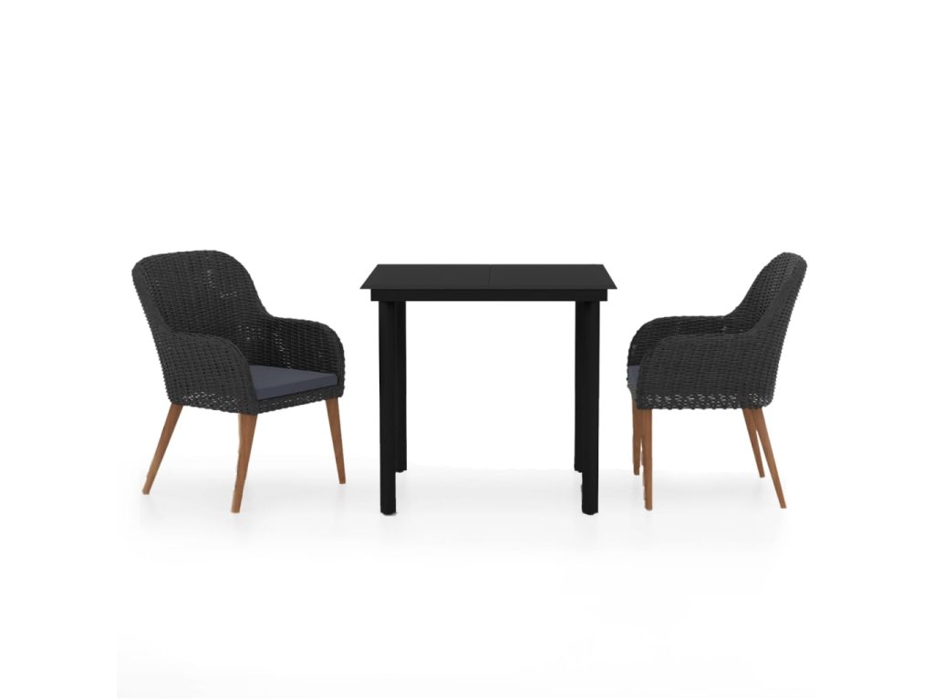 vidaXL 3-dielna záhradná jedálenská súprava s podložkami, čierna