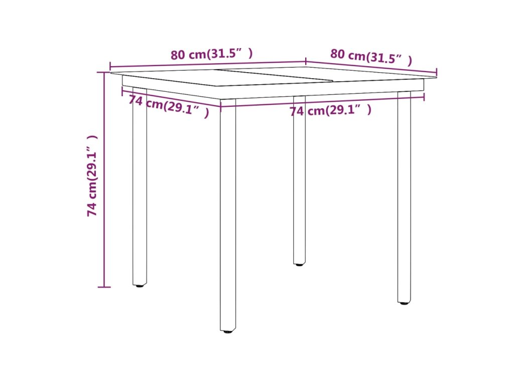 - Rozmery stola: 80 x 80 x 74 cm (D x Š x V)