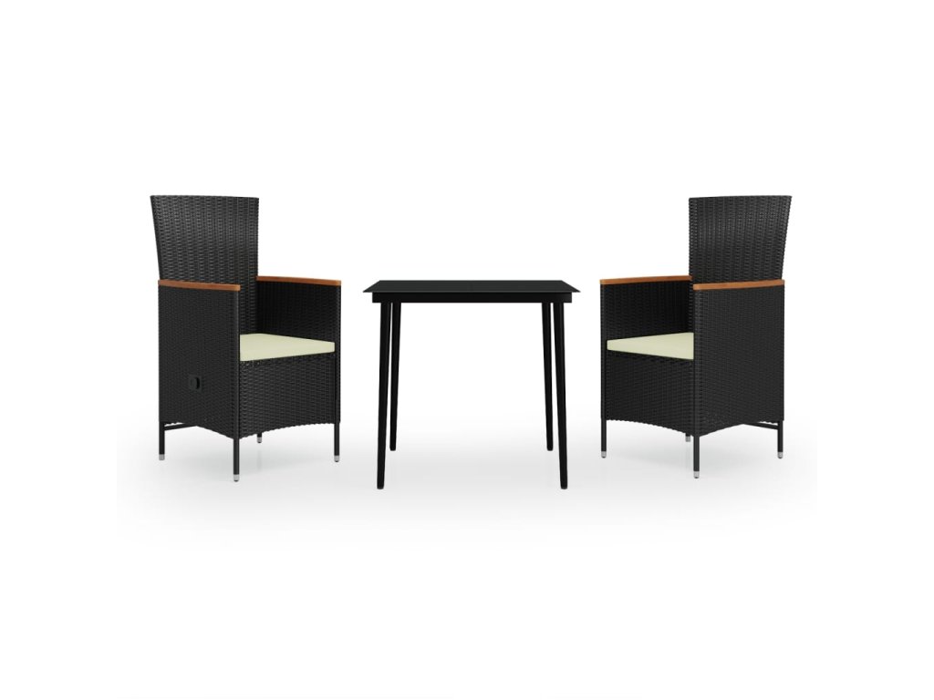 vidaXL 3-dielna záhradná jedálenská súprava s podložkami, čierna