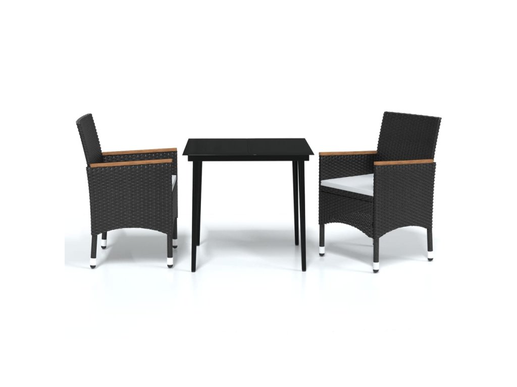 vidaXL 3-dielna záhradná jedálenská súprava s podložkami, čierna