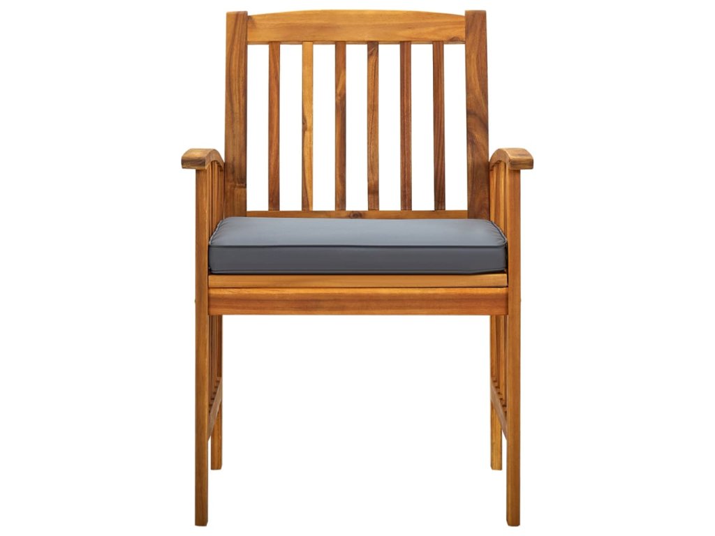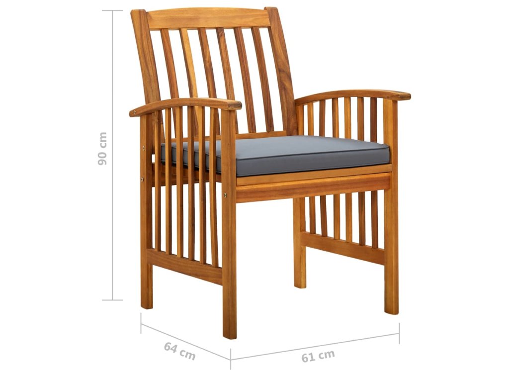 Jedálenský stôl je vyrobený z masívneho akáciového dreva, tvrdého dreva s hustou štruktúrou, vďaka čomu je robustný, odolný a ľahko sa udržiava. Drevenú dosku je možné použiť na uloženie potravín, nápojov a iných predmetov. Tieto jedálenské stoličky s dreveným rámom s olejovou povrchovou úpravou dodávajú vašej terase alebo dvoru klasický vzhľad a vášmu vonkajšiemu priestoru dodávajú prirodzený nádych. Husto polstrované vankúše tiež dodávajú extra pohodlie pri sedení. Táto súprava sa navyše ľahko čistí vlhkou handričkou.