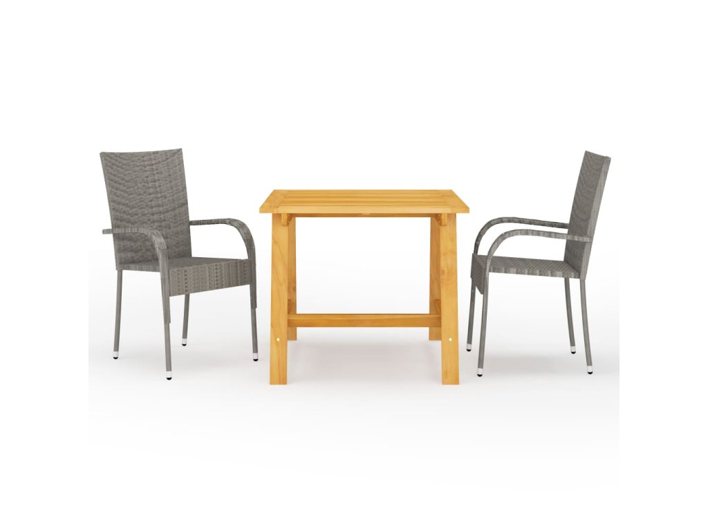 Jedálenský stôl je vyrobený z masívneho akáciového dreva s olejovou povrchovou úpravou, vďaka čomu je stabilný, odolný a ľahko sa udržiava. Tieto jedálenské stoličky s oceľovým rámom s práškovým nástrekom pokrytým PE ratanom odolným voči poveternostným vplyvom sú pevné a ľahko sa čistia. Vonkajšie stoličky sú ľahké a dajú sa skladať na seba, aby sa ušetrilo miesto, keď sa nepoužívajú.