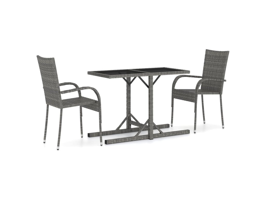 Vďaka práškovanému oceľovému rámu pokrytému PE ratanom, ktorý je odolný voči vplyvom počasia, je táto súprava pevná a ľahko sa čistí. Sklenená doska stola dodáva do vášho vonkajšieho obytného priestoru nádych prepychu. Vonkajšie stoličky sú ľahké a dajú sa zložiť, aby šetrili priestor, keď sa nepoužívajú.