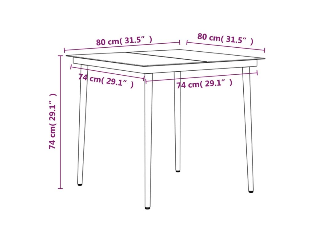 - Rozmery stola: 80 x 80 x 74 cm (D x Š x V)