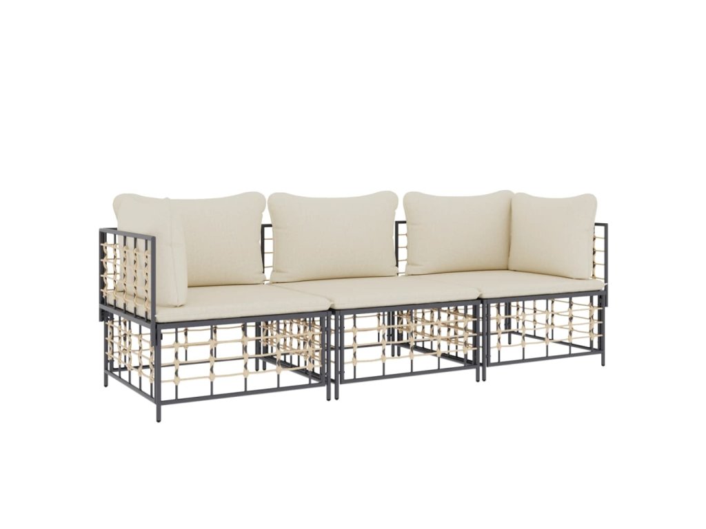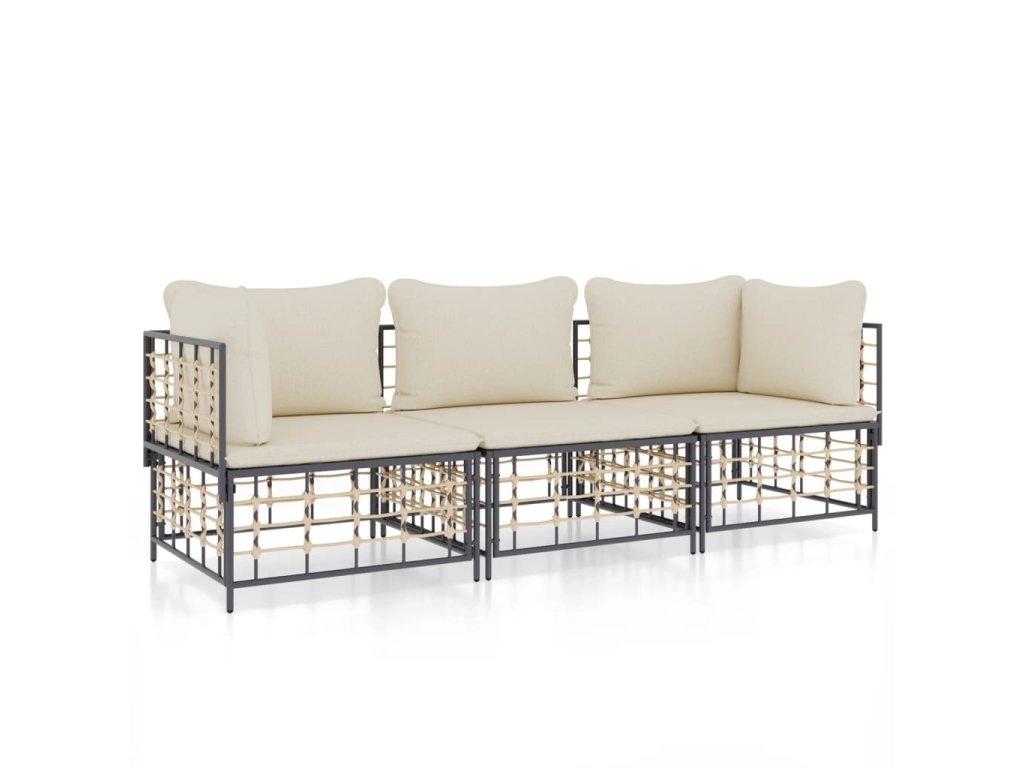 vidaXL 3-dielna záhradná sedacia sada s vankúšmi antracitová polyratan