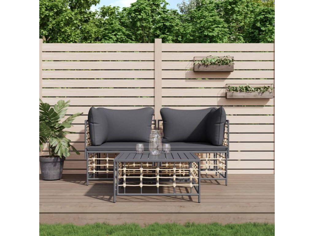 vidaXL 3-dielna záhradná sedacia sada s vankúšmi antracitová polyratan
