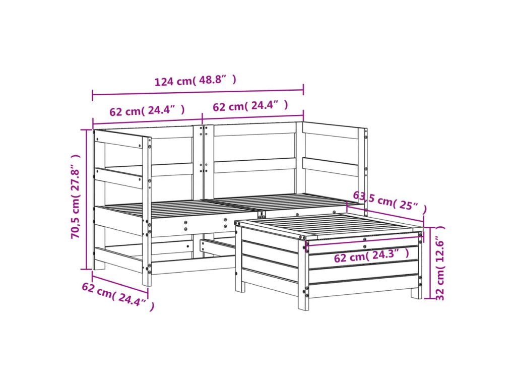 vidaXL 3-dielna záhradná sedacia súprava biela borovicový masív