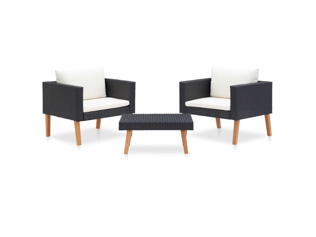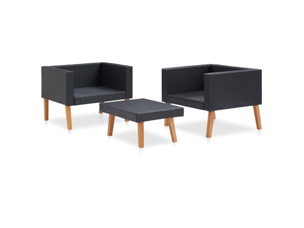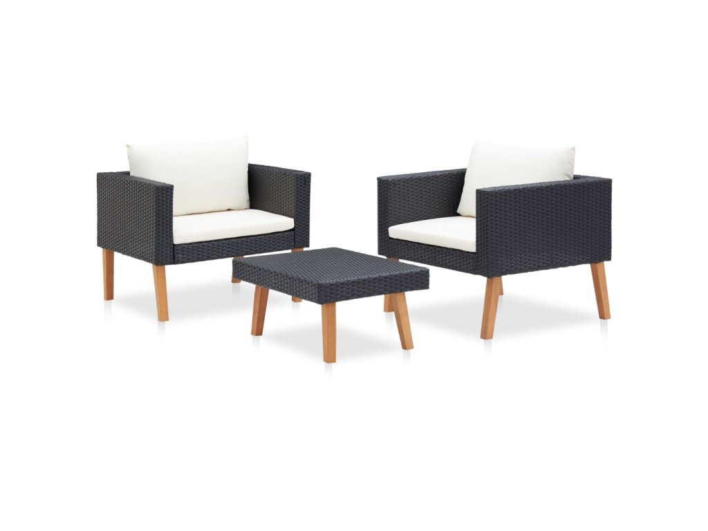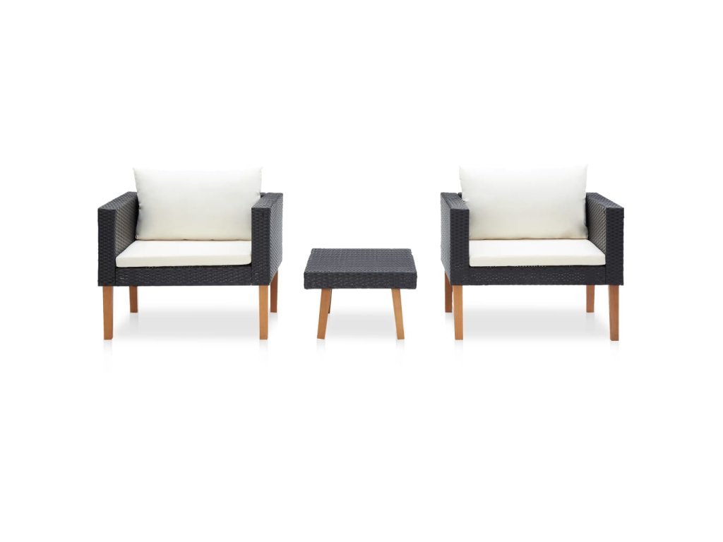 vidaXL 3-dielna záhradná sedacia súprava+podložky, polyratan, čierna