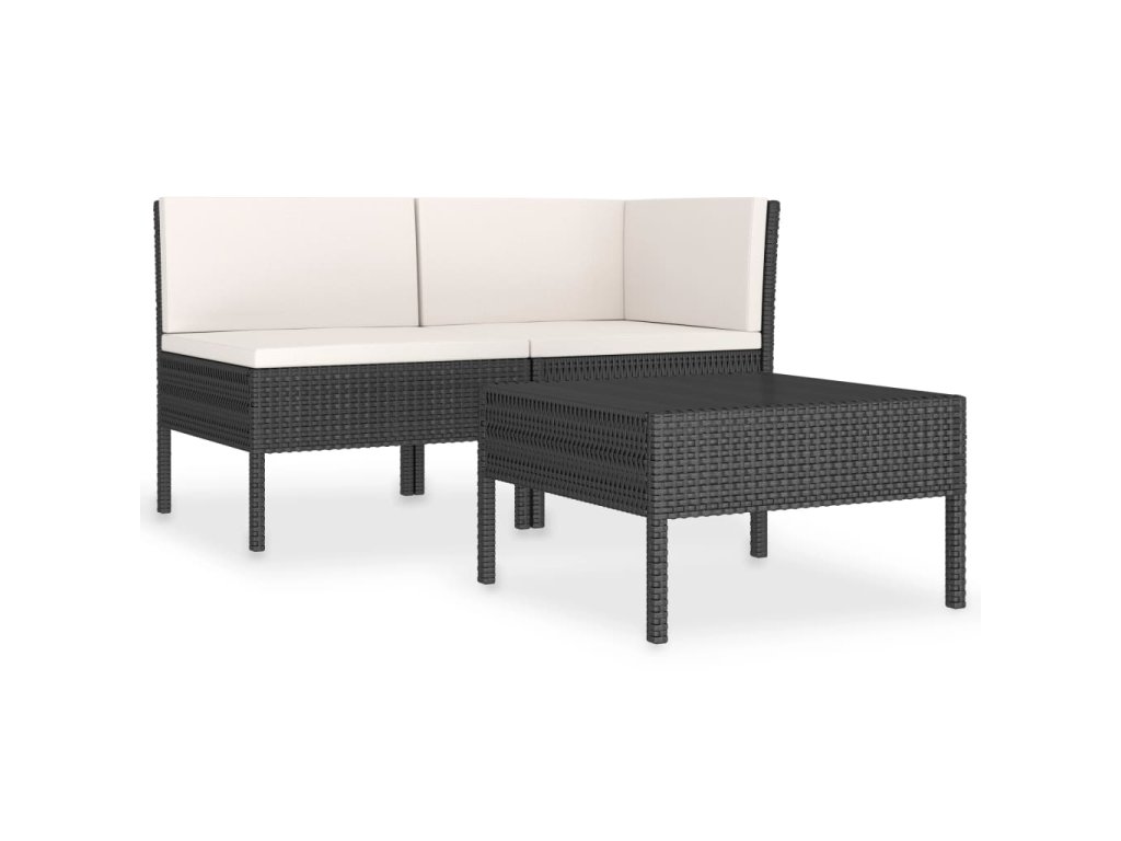 vidaXL 3-dielna záhradná sedacia súprava+podložky, polyratan, čierna