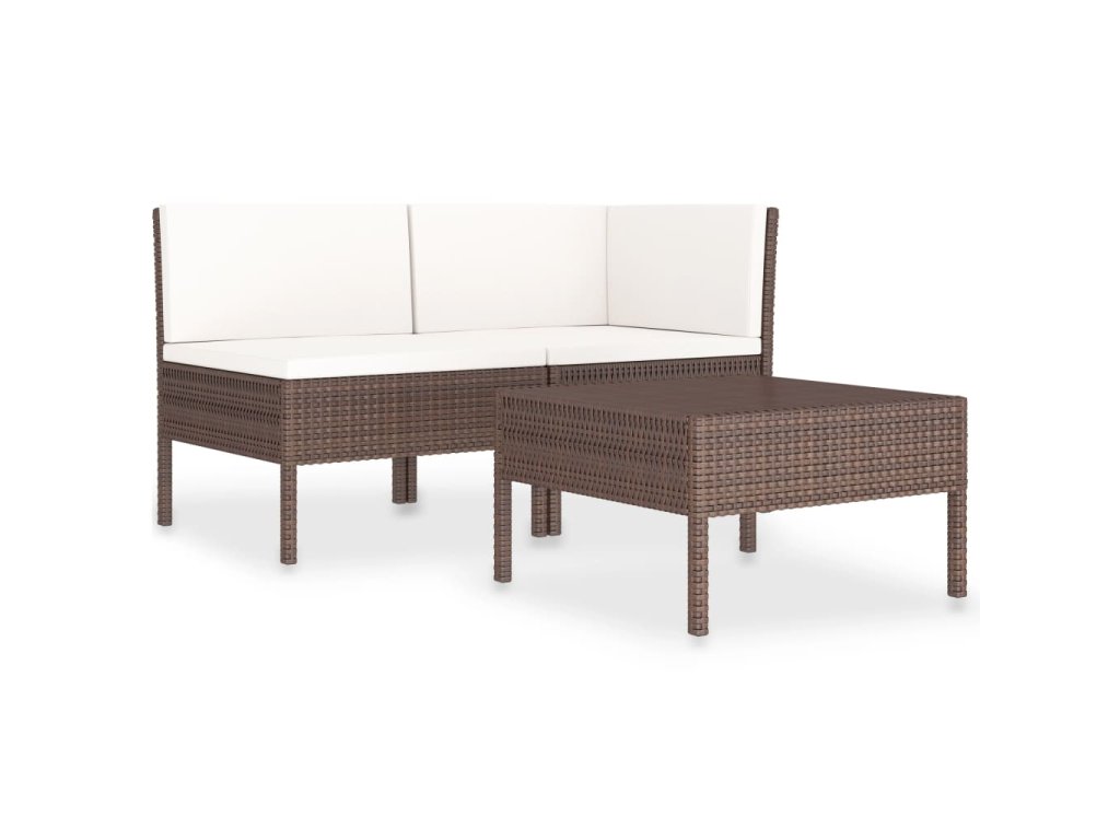 vidaXL 3-dielna záhradná sedacia súprava+podložky, polyratan, hnedá
