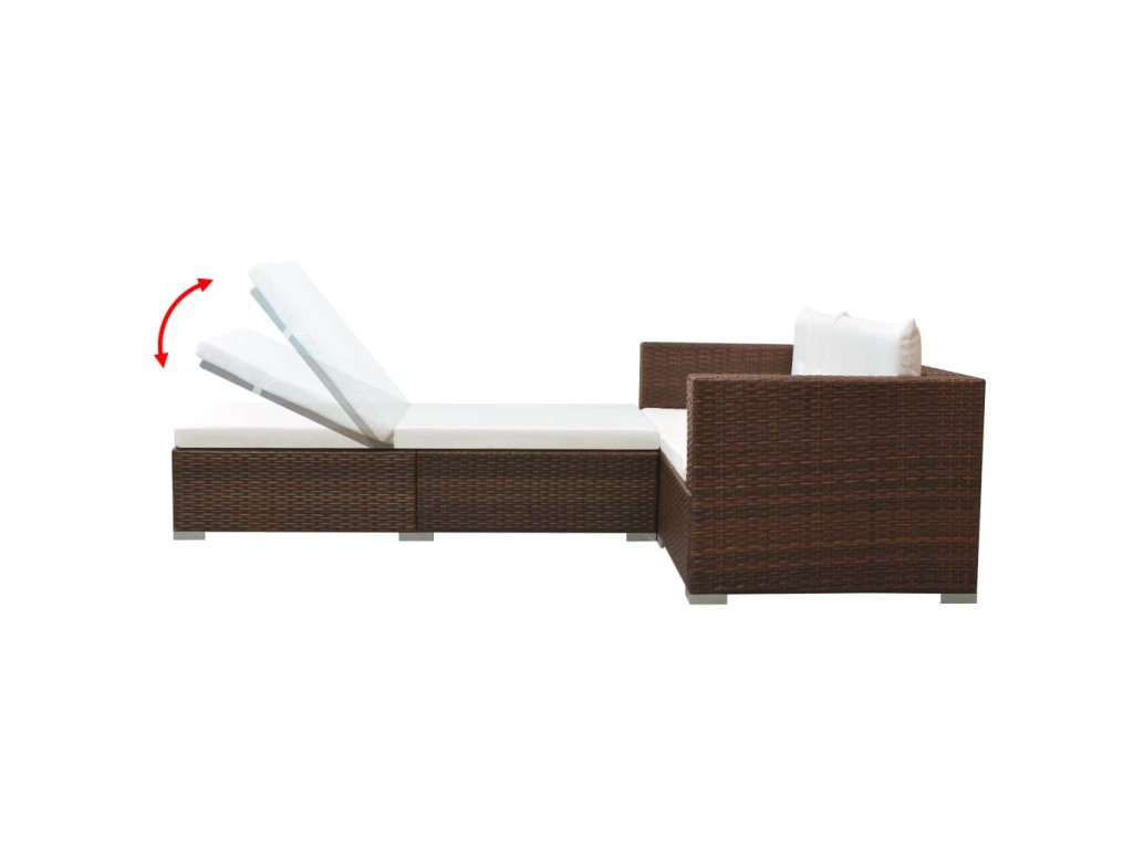 Súprava záhradného nábytku je vyrobená z PE ratanu, ktorý je odolný voči poveternostným vplyvom, takže sa ľahko čistí a znesie aj každodenné používanie v exteriéri. Pohovky a ležadlo majú robustný a trvácny oceľový rám s práškovou povrchovou úpravou. Ležadlo má nastaviteľné operadlo, aby ste si vždy našli čo najpohodlnejšiu polohu. Odnímateľné podložky na sedadlo a vankúše na operadlo sú veľmi pohodlné a ich polyesterové poťahy sú mäkké a dajú sa jednoducho očistiť. Ľahká modulárna ratanová súprava pohoviek sa dá jednoducho premiestňovať, a preto ju môžete ľubovoľne prispôsobiť akýmkoľvek priestorom.