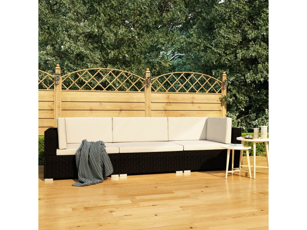 vidaXL 3-dielna záhradná sedacia súprava s podložkami čierna polyratanová