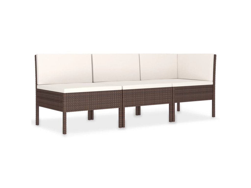 vidaXL 3-dielna záhradná sedacia súprava s podložkami hnedá polyratanová