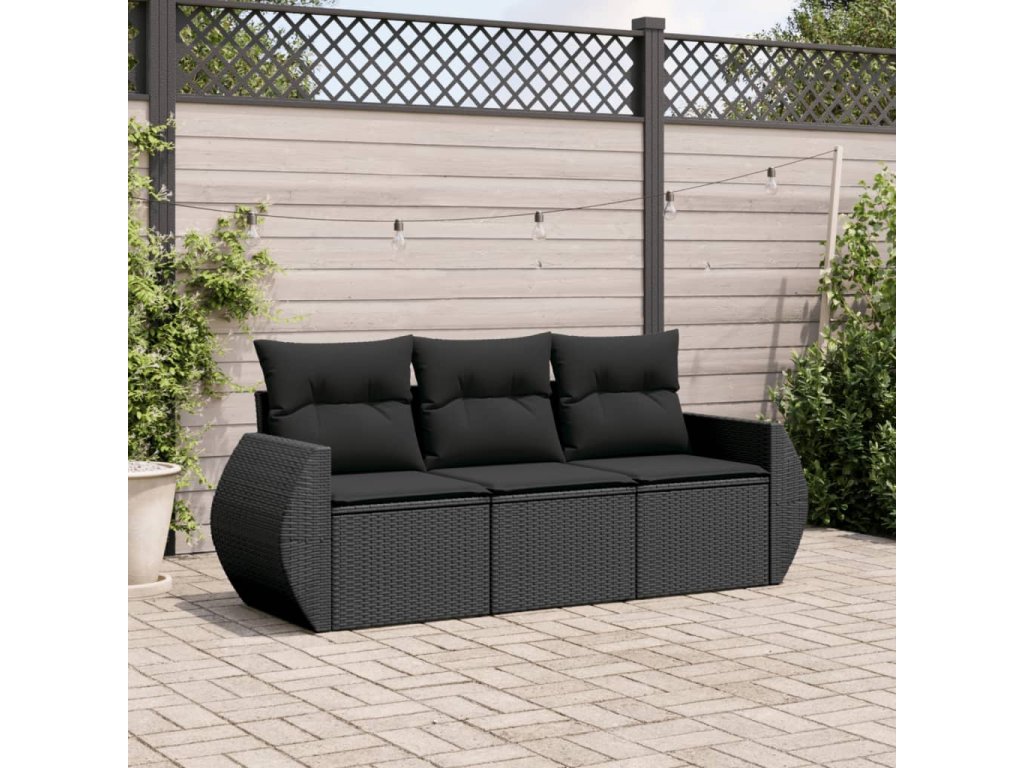 vidaXL 3-dielna záhradná sedacia súprava s podložkami polyratan čierna