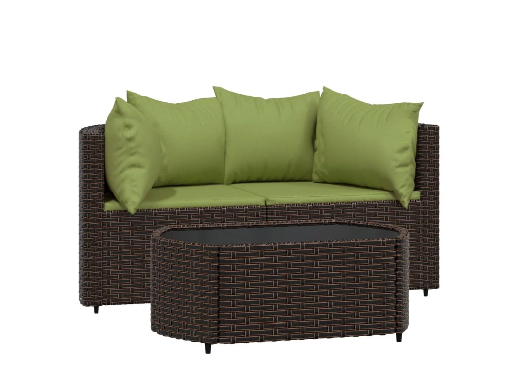 vidaXL 3-dielna záhradná sedacia súprava s podložkami polyratan hnedá