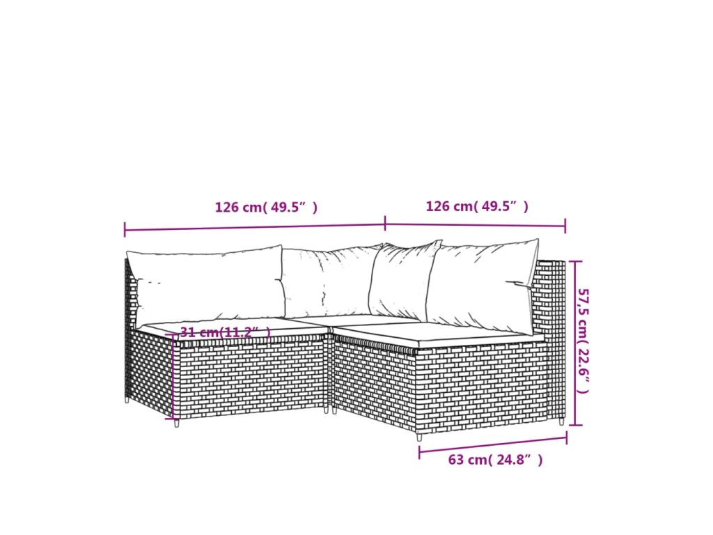 vidaXL 3-dielna záhradná sedacia súprava s podložkami polyratan hnedá