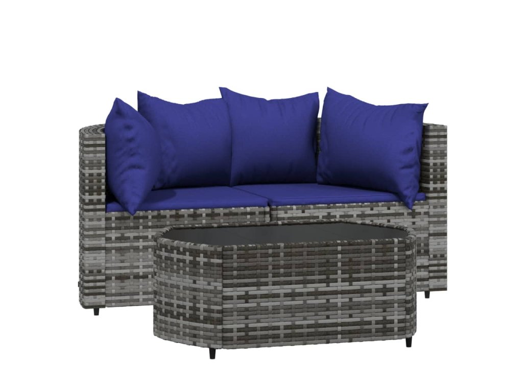 vidaXL 3-dielna záhradná sedacia súprava s podložkami sivá polyratan