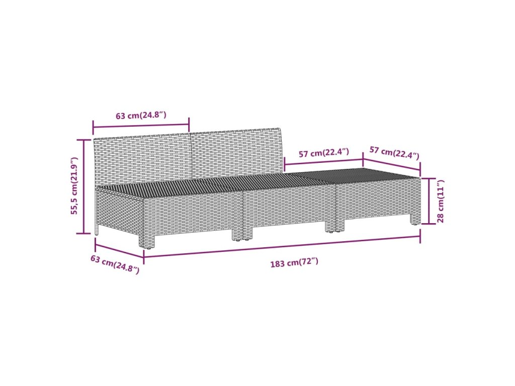 - Celkové rozmery: 183 x 63 x 55,5 cm (Š x H x V)