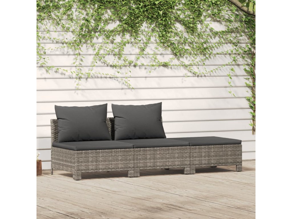 vidaXL 3-dielna záhradná sedacia súprava s podložkami sivá polyratan