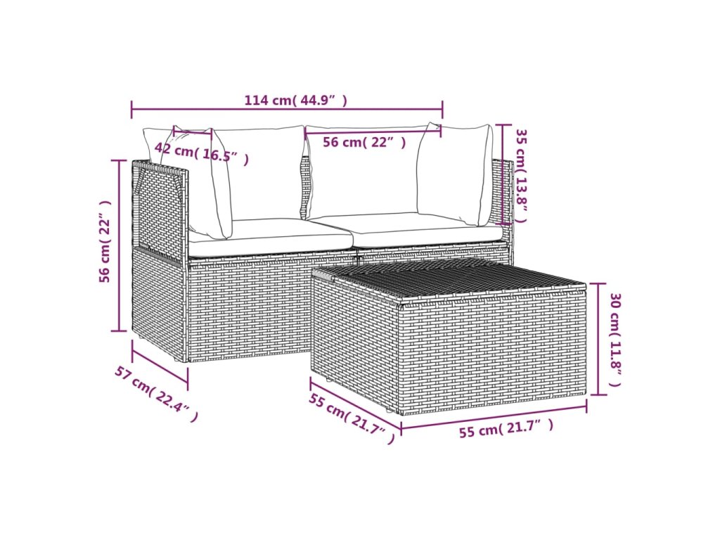 - Materiál: PE ratan, oceľ s práškovým nástrekom, polyester, PVC (polyvinylchlorid)