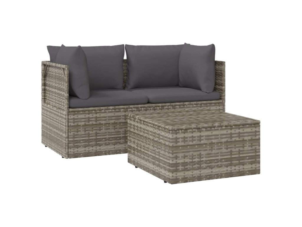 vidaXL 3-dielna záhradná sedacia súprava s podložkami sivá polyratan