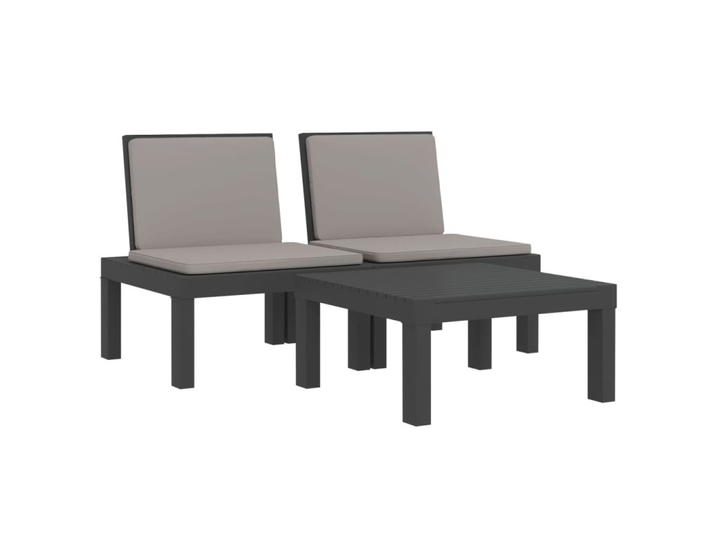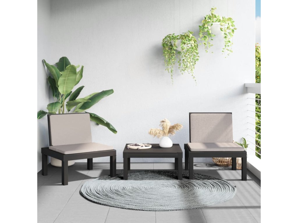 vidaXL 3-dielna záhradná sedacia súprava s vankúšmi antracitová PP