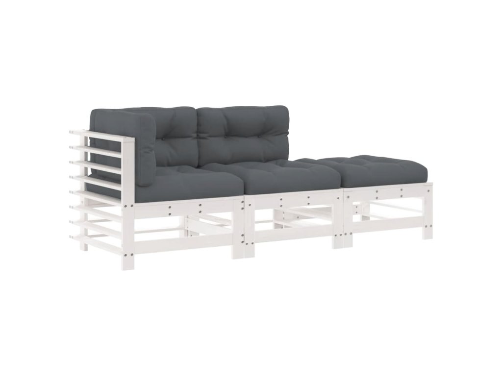 vidaXL 3-dielna záhradná sedacia súprava s vankúšmi biela masív