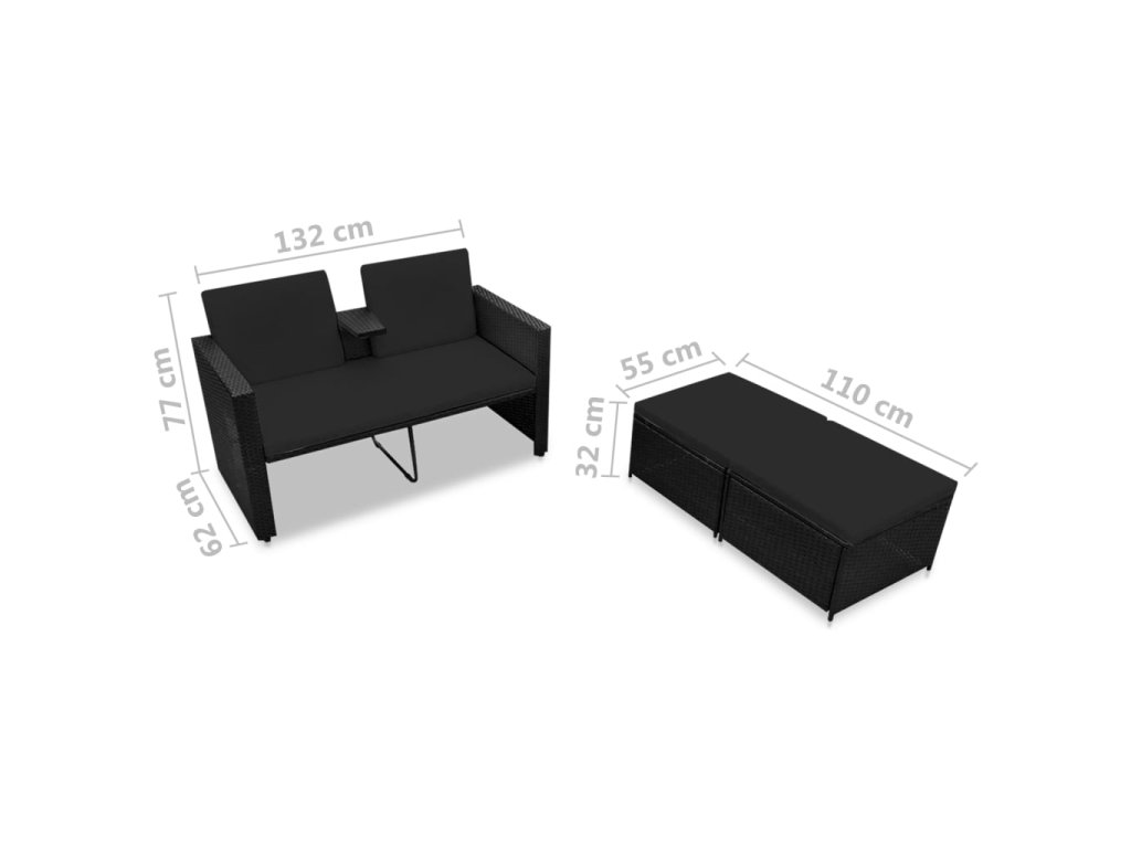 vidaXL 3-dielna záhradná sedacia súprava s vankúšmi čierna polyratanová