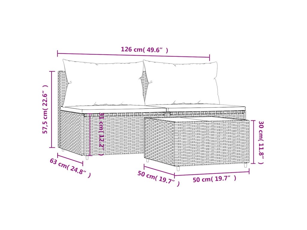 vidaXL 3-dielna záhradná sedacia súprava s vankúšmi polyratan čierna