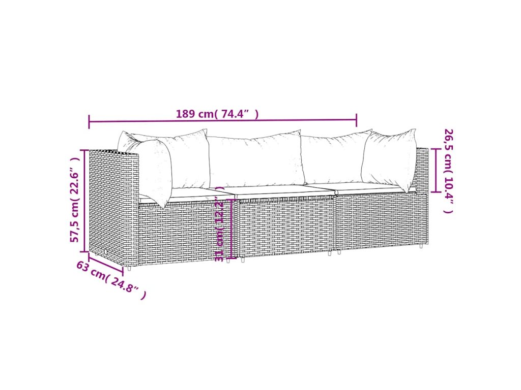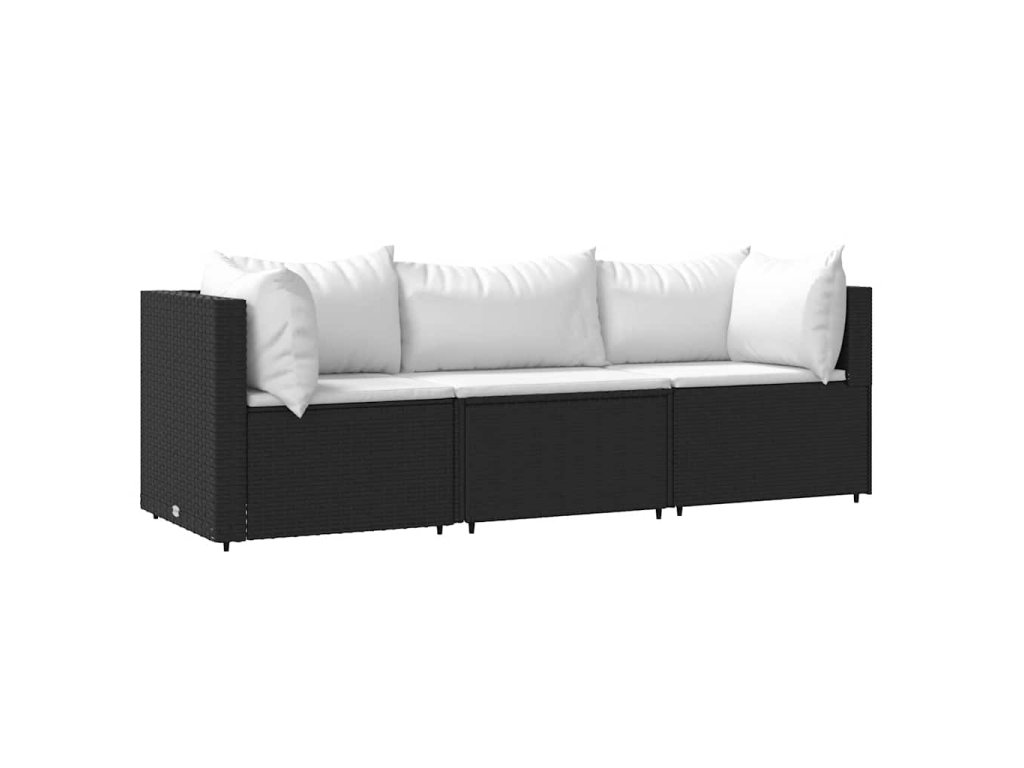 vidaXL 3-dielna záhradná sedacia súprava s vankúšmi polyratan čierna