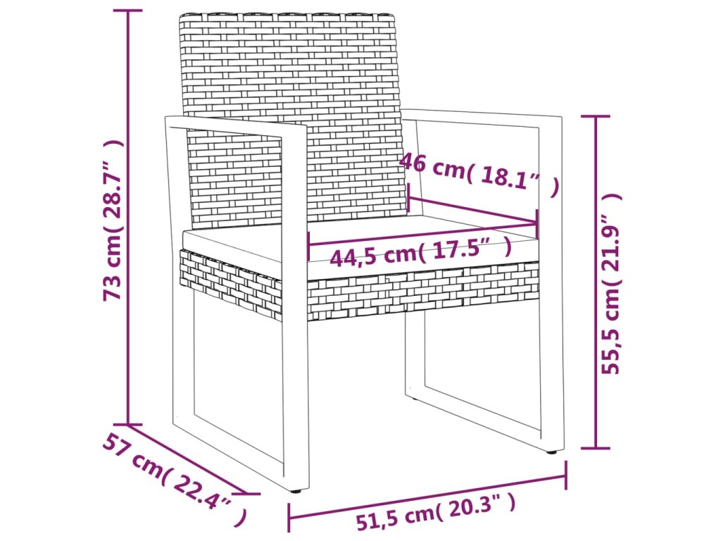 - Materiál: PE ratan, tkanina (100% polyester), galvanizovaná oceľ s práškovým nástrekom, sieťotlačové sklo
