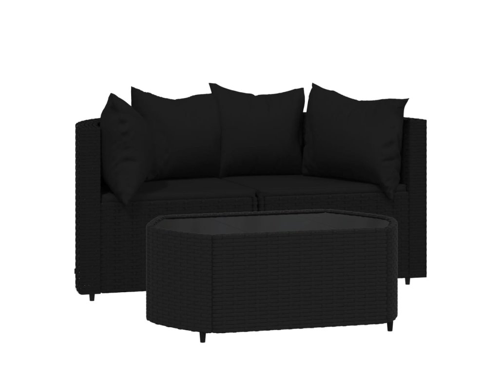 vidaXL 3-dielna záhradná sedacia súprava s vankúšmi polyratan čierna