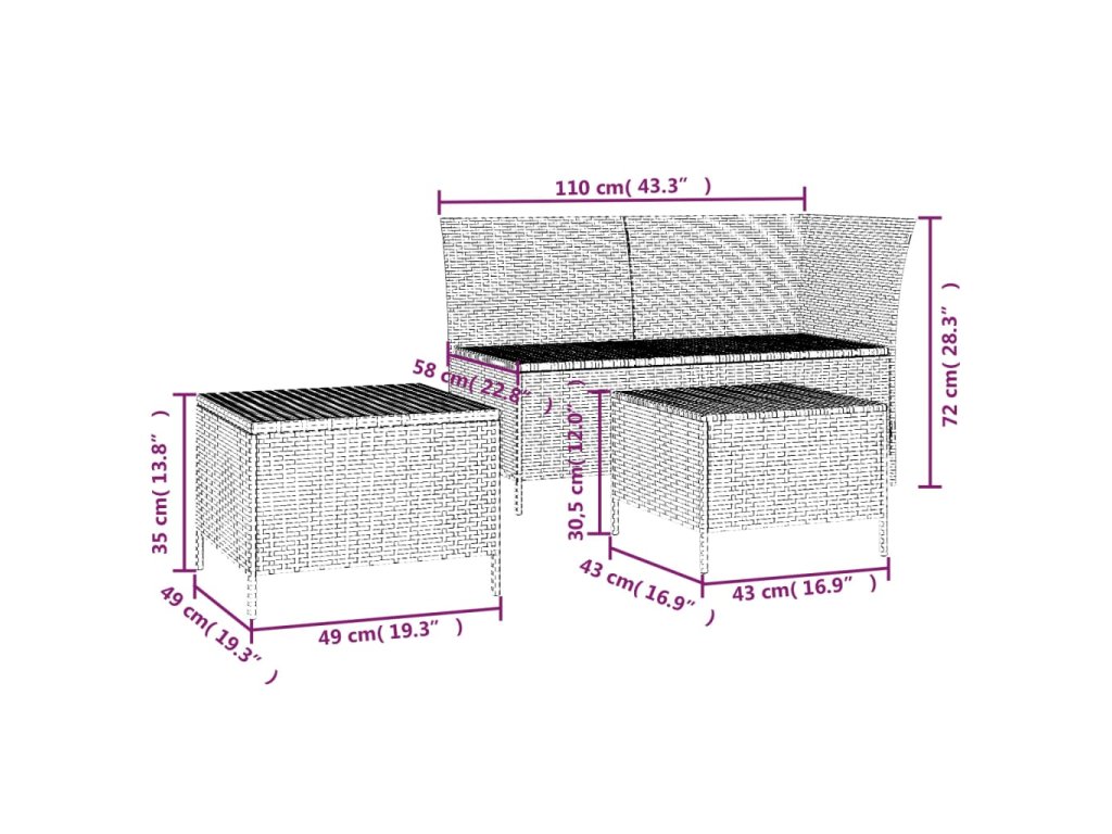 - Rozmery rohovej sedačky: 110 x 58 x 72 cm (Š x H x V)