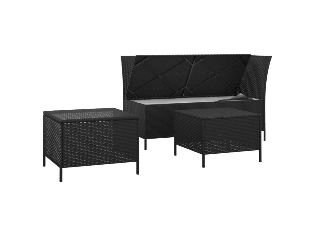 vidaXL 3-dielna záhradná sedacia súprava s vankúšmi polyratan čierna