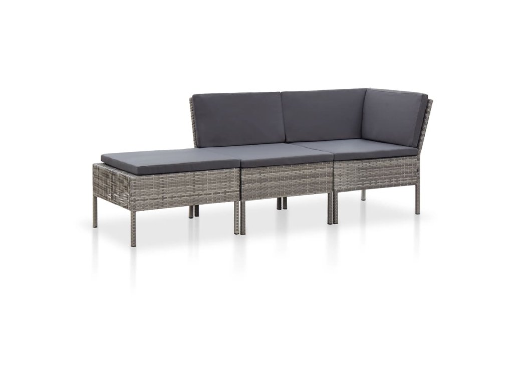 vidaXL 3-dielna záhradná sedacia súprava s vankúšmi polyratan sivá