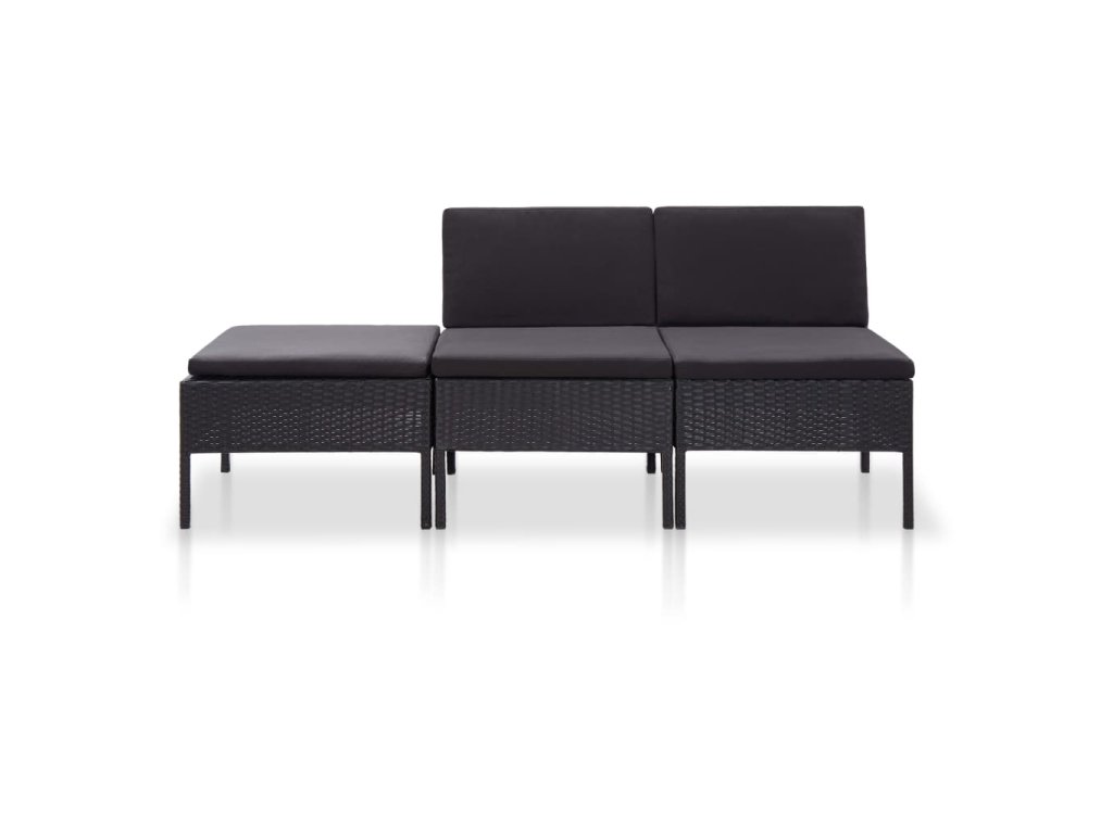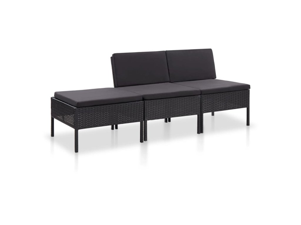 vidaXL 3-dielna záhradná sedacia súprava s vankúšmi polyratanová čierna