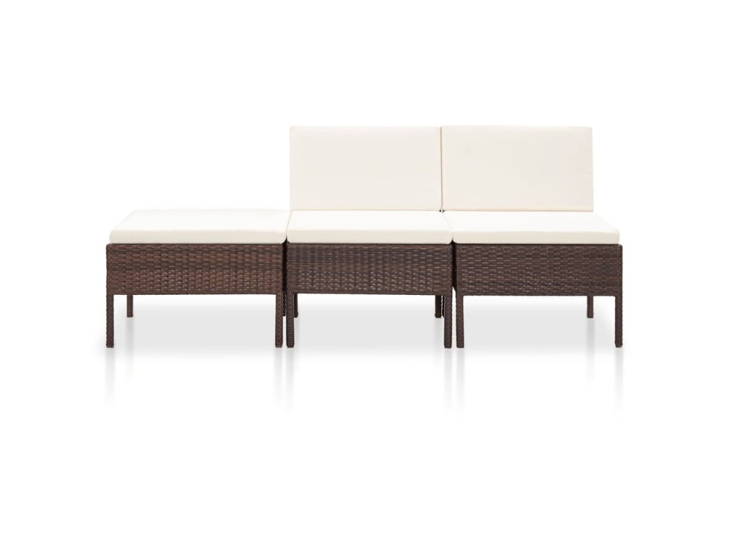 vidaXL 3-dielna záhradná sedacia súprava s vankúšmi polyratanová hnedá