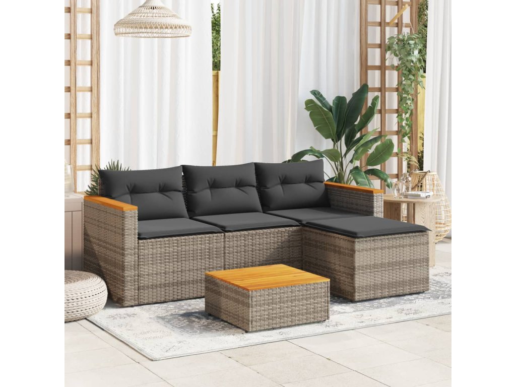 - Materiál: PE (polyetylén) ratan, oceľ s práškovou povrchovou úpravou, akáciový masív s prírodným olejovým náterom