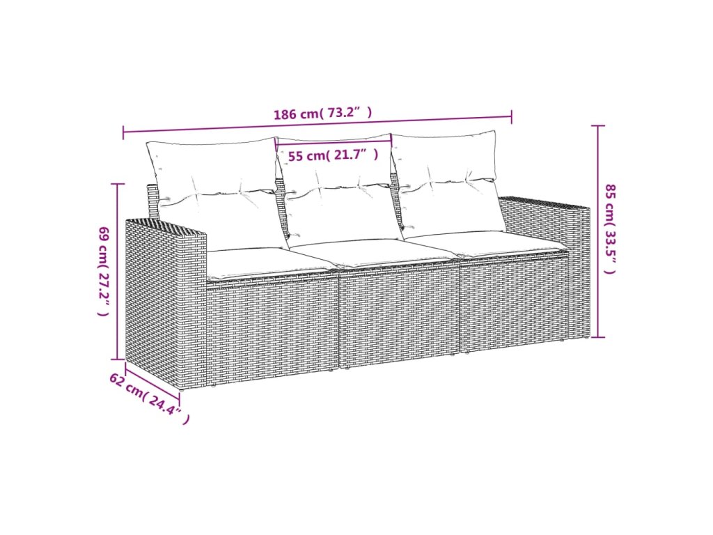 vidaXL 3-dielna záhradná sedacia súprava s vankúšmi sivá polyratanová