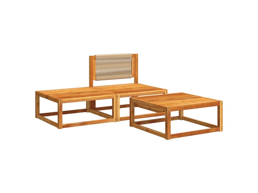 vidaXL 3-dielna záhradná súprava pohoviek s vankúšmi, akácia a lano