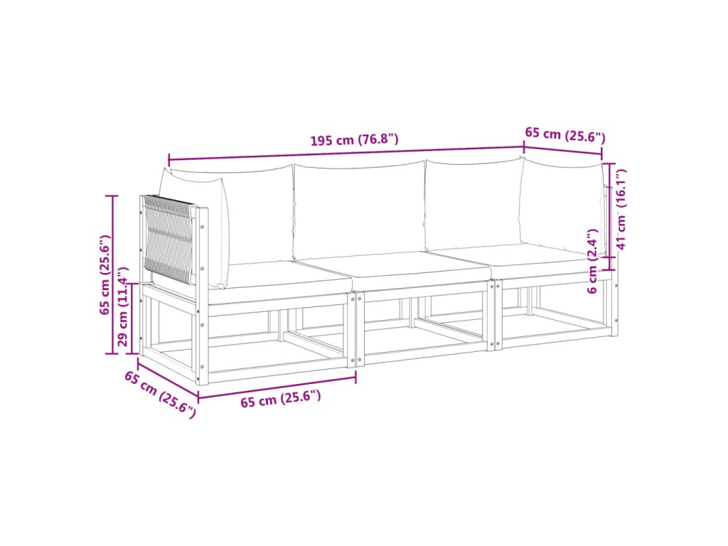 vidaXL 3-dielna záhradná súprava pohoviek s vankúšmi, akácia a lano