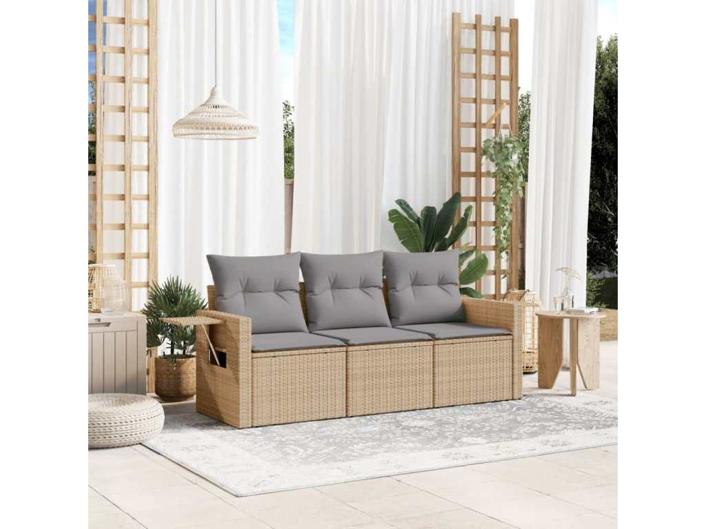 vidaXL 3-dielna záhradná súprava pohoviek s vankúšmi béžová polyratan